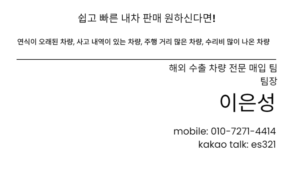 쉽고 빠른 내차 판매를 원하신다면 언제든지 연락주셨으면 좋겠습니다!!